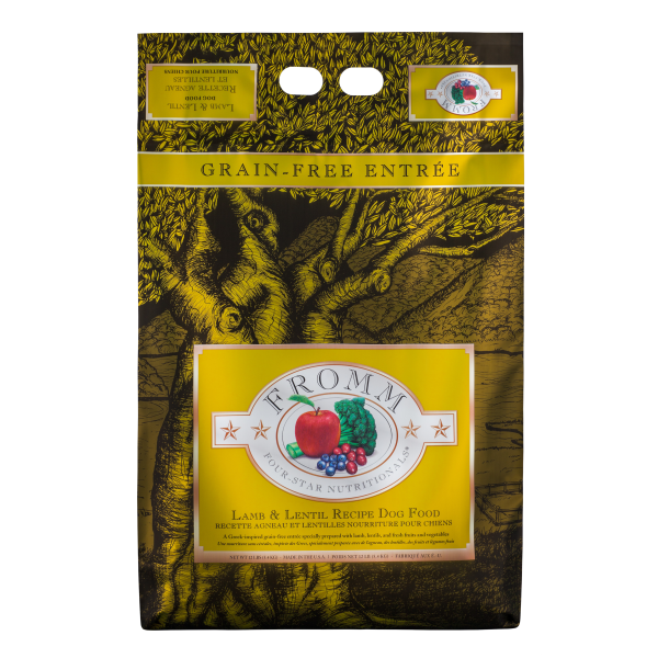 Fromm Four-Star K9 Grain-Free Lamb & Lentil Entrée features hand-selected cuts of lamb, olive oil, yellow oil, yellow squash, zucchini & broccoli. This hearty, grain-free Greek cuisine contains no wheat, rice, rye, barley or triticale and thus does not present the gluten associated with these grains. Prepared in small, controlled batches, Four-Star is made with added prebiotics, probiotics, vitamins, & minerals. Fromm Four-Star offers a variety of entrées for dogs of all life stages. Their interchangeable recipes are prepared with fresh ingredients delivered daily to their US family facility.