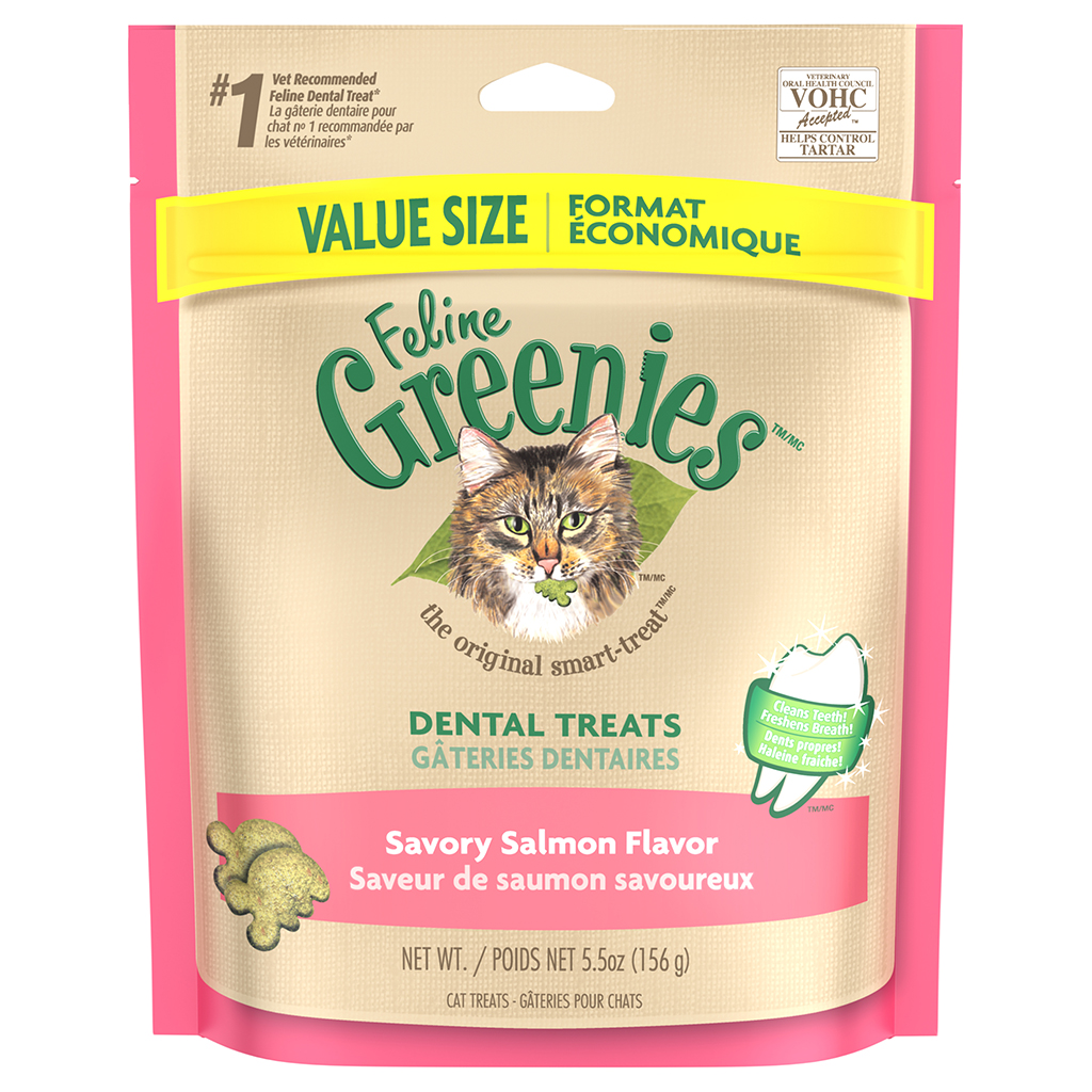 Oral health issues are the most common health problems diagnosed in adult pets. ***FELINE GREENIES™ Dental Treats offer complete nutrition and help your cat maintain good dental care. They have a unique shape and crunchy texture that’s proven to reduce tartar. Plus, with an irresistible taste, they are sure to stir up purrs of joy. Cat dental care has never been easier — or more delicious.