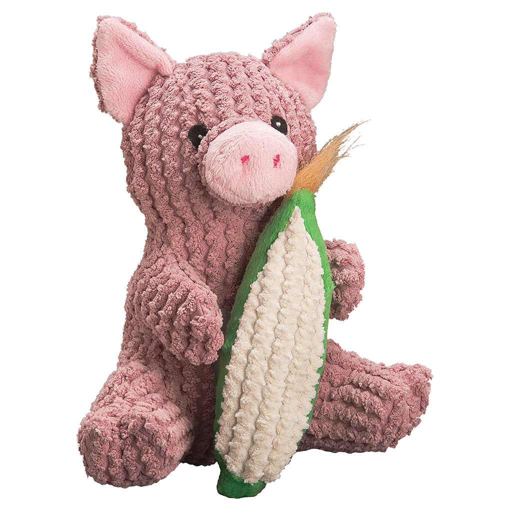 The playful and interactive pig dog toy contains a secondary corn toy that’s attached with a double stitched velcro that makes a “crrrrrunch” sound when they are pulled apart. The pig contains a squeaker and a grunter on the inside. The outside material is super soft, yet durable and tug resistant Plush Pearl material. Perfect for dogs who love to snuggle with toys or inquisitive dogs who want more stimulation.